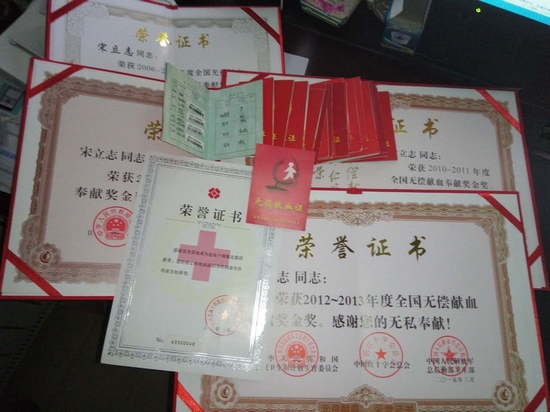 41000毫升,如果按照一名成年人大約4500毫升血量計算,便是超過9個人的血量總和。今年34的宋立志,是洪官屯鎮一名機關干部,2003年加入無償獻血隊伍,到目前已獻血52次,其中8次是獻全血,44次獻血小板,獻血量達41000毫升;3次獲得“無償獻血”金獎,1次“無償獻血”銅獎,在聊城市血站,他可是名副其實的“獻血達人”。