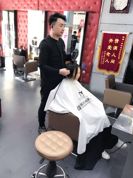 自開業(yè)以來,高飛始終以品質(zhì)、真誠、時(shí)尚、創(chuàng)新為標(biāo)語,以技術(shù)誠信為標(biāo)準(zhǔn)。銘古絲理發(fā)店所在的發(fā)祥巷社區(qū)老年人居多,有很多困難老人由于行走不便、擔(dān)心理發(fā)價(jià)格高、理不好等原因,使得理發(fā)成了難題。高飛通過社區(qū)居委會了解到這些情況后,主動帶領(lǐng)員工走進(jìn)社區(qū),利用周六周末兩天時(shí)間免費(fèi)為社區(qū)老人理發(fā),同時(shí)承諾凡是到店理發(fā)的社區(qū)老年人,都將享受到最優(yōu)惠的價(jià)格和最優(yōu)質(zhì)的服務(wù)。為了弘揚(yáng)正氣,奉獻(xiàn)愛心,傳播正能量,從2013年1月起,在高飛的號召下,銘古絲美發(fā)沙龍開啟了“關(guān)愛銀發(fā)公益行動”。他們立足本職,每周一上午9:00——12:00,為65歲以上的社區(qū)老年人免費(fèi)理發(fā)。不論春夏秋冬,不論酷暑嚴(yán)寒,只要店門敞開,每周一的活動就不曾間斷過,對于行動不便的老人,高飛還堅(jiān)持定期上門服務(wù)。從此,社區(qū)多了一個熱心的身影,小區(qū)里的孤寡老人、長年臥床不起的重癥患者、行動不便的老人也多了一位義務(wù)理發(fā)師。