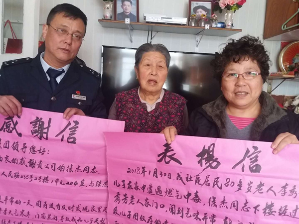 李秀英和秦云盛被徐杰等鄰居們護送到醫(yī)院,趕來的鄰居們都幫忙跑前跑后,徐杰還幫忙墊付了2千多元的醫(yī)藥費,還幫忙買來被褥取暖。徐杰等人回到家中已經(jīng)下午4點多,“大家都在忙活,沒顧上吃飯,從醫(yī)院出來時,還是徐杰帶著我們?nèi)コ粤孙垺!庇诠鹩⒔榻B說,平時大家的感情就特別好,你家有困難我?guī)鸵话,你家有困難我伸出援手,取暖費收費地址換了也是徐杰帶著于桂英去繳費,于桂英和李秀芳都把徐杰當?shù)艿芎秃⒆涌创,家里有了好吃的也不忘叫來一起分享?月12日,市北區(qū)阜新路街道阜康社區(qū)宗德珍主任和居民于貴英一同帶著表揚信和感謝信來到公交集團嶗山巴士第六分公司,要感謝分公司安保人員徐杰,多虧徐杰救了煤氣中毒的社區(qū)居民李秀芳一家三口。
