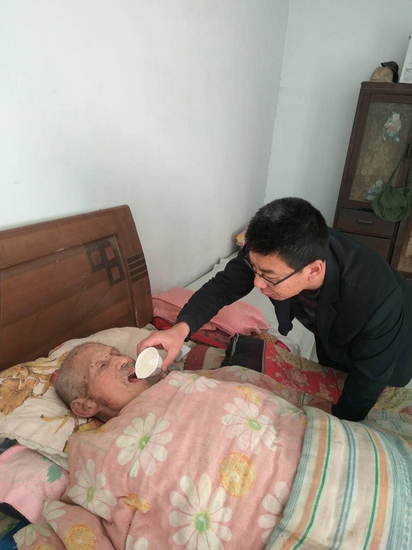 孟老師的爺爺奶奶都是高齡老人,爺爺94歲,奶奶95歲。奶奶年齡雖大,但是自己會動,但爺爺長年臥床,手腳不會動彈,吃喝拉撒全由人照顧。孟老師的父親身體不是很好,照顧兩位老人真是力不從心。孟老師每天放學回家先給爺爺換尿布,再給爺爺喂飯,同時還要照顧奶奶先吃。奶奶脾氣大 ,稍有不適就沖人亂發脾氣。這時孟老師總是微笑著耐著性子,任由奶奶的使喚。爺爺有前列腺炎,小便經常肚子疼,還有時解不下來,這時孟老師細心地給爺爺喂藥并熱敷輔助排尿。爺爺的腿不能動,經常麻木,孟老師上網查閱資料,還請教大夫,給爺爺按摩點穴減輕老人的痛苦。去年,爺爺的前列腺加重不能小便,能用的辦法都用上了也無濟于事,爺爺疼的只叫喚,小肚子憋的硬梆梆的情況很危險。來到醫院后,導尿也沒成功,醫生決定做個手術,在肚子上插導尿管。雖說是小手術,但畢竟老人年紀高,爺爺很害怕。手術期間孟令華全程陪同,他緊握著爺爺的手,盡力安撫老人,但其實自己內心十分害怕,生怕爺也挺不住。手術很快結束了。但放尿液的管子不能始終處于開放狀態,醫生叮囑半個小時才可以開一次,并且這期間老人要多喝水。孟老師一點也不敢怠慢,完全按照醫生的話看護爺爺。麻藥勁一過,刀口有點疼,再加上爺爺年紀高,有各種并發癥,爺爺不停的說胡話,時而清醒,時而迷糊,折騰了一宿。孟老師更是一宿沒合眼。在爺爺住院期間,父親也累病了,于是孟老師白天上班,晚上代替父親值晚班照顧爺爺。出院回家后,照顧爺爺更麻煩了,爺爺的接尿袋每天得消毒,每隔半月還得重新更換導尿管,同時刀口要處理好。孟老師不怕臟,不怕累,用自己的孝心呵護著年邁的爺爺。