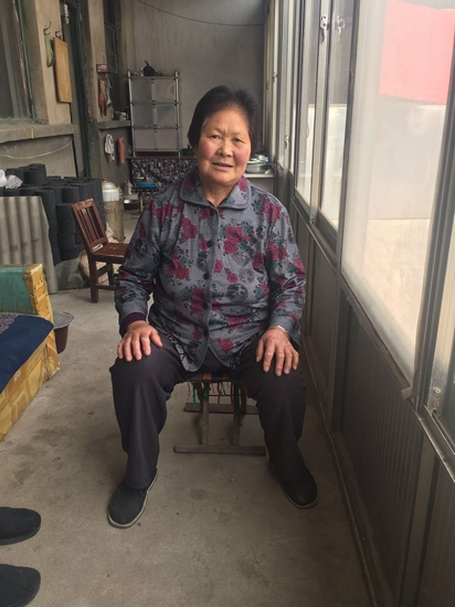 二舅舅去世后,她又負(fù)擔(dān)起照顧大舅舅的責(zé)任。大舅舅是解放前赴朝參戰(zhàn)待命的退伍軍人,一向以來身體不太好,生活完全不能自理,口齒不清楚,行動不便同樣患有腦血栓。每天早晨起床后,她就幫舅舅挪到床下的小凳子上,拖著小凳子把舅舅拉到客廳能曬著太陽的沙發(fā)上,她去干活,做飯,舅舅就看著外面的景,還跟著說說話。一天下來,吃完晚飯,擦洗完,在把老人放到小凳子上,打到床邊,扶上床。一天就這樣平淡地過去,舅舅每天都是開心的。