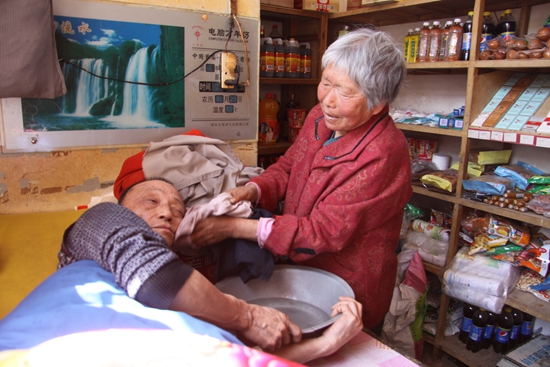 2008年,王淑蓮給大伯哥送飯時(shí),于振文說他肚子難受吃不下,細(xì)心的王淑蓮發(fā)現(xiàn)大伯哥的肚子異常的腫大,便急忙在村里雇了輛面包車將于振文送到了醫(yī)院。經(jīng)過醫(yī)生檢查,于振文患了嚴(yán)重的肝硬化腹水,“當(dāng)時(shí)醫(yī)生說就算是治療也是保守治療,要俺們做好充分的心里準(zhǔn)備”,王淑蓮回憶說,“他大伯得病住院,家里一分錢都沒有了,全是俺兒子于翔龍?jiān)跓熍_(tái)跟同事、朋友借了近2萬塊錢給他大伯看病治療,俺兒說就是砸鍋賣鐵也得救他大伯的命”。如今,在廟后鎮(zhèn)山西夼村只要說起王淑蓮,村里沒有一個(gè)人不豎大拇指的,“淑蓮嫂子真不容易,老話都說‘久病床前無孝子’,本來她自己的身體就不好,省吃儉用操持這個(gè)家,還照顧她家殘疾大伯哥40多年,想想都讓人感動(dòng)”,同村鄰居林桂芝說道。然而在王淑蓮的心中,孝老愛親早已融為她骨子里的那份信念與執(zhí)著,她用自己的實(shí)際行動(dòng)發(fā)揚(yáng)傳承著人間大愛,書寫著無悔人生。