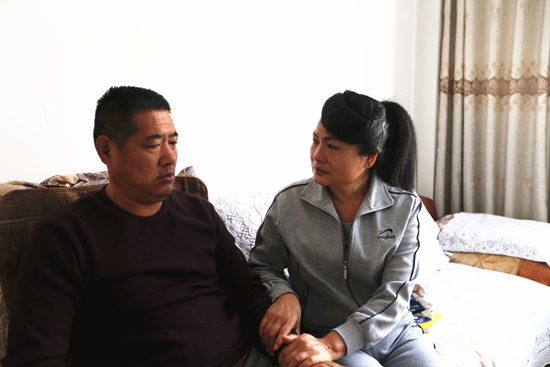 天氣最熱的時候,馬秀榮每天堅持為丈夫擦洗身子。為了避免長褥瘡,晚上每隔一小時,她就起床幫丈夫翻一次身。每次吃飯,馬秀榮都先用自己瘦弱的肩膀頂著身材魁梧的丈夫坐起來,端起小碗將飯菜送到丈夫嘴邊。有時候,為了“搬”丈夫到沙發上坐坐,從床頭到沙發近在咫尺的距離卻能摔個跟頭。熬不住的時候,馬秀榮也會背著丈夫偷偷流眼淚,但是,她擦干了眼淚,又換上笑容……