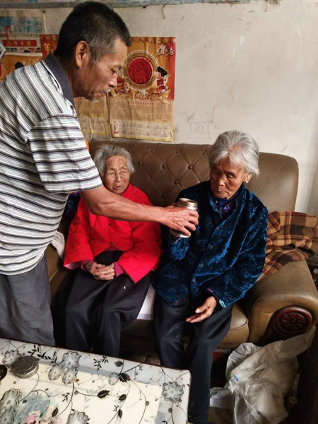 前兩年,兩位老人先后得了腦血栓,岳母昏睡了十幾天,治療半個月,由于年齡太大,命保住了,但是卻再也站不起來了。每天早上一起床,李慶民便幫岳母穿好衣服,再把岳母抱到客廳的沙發(fā)上。生病痊愈的母親情況稍微好一些,住院治療半個月,基本沒留下后遺癥,等母親起床后,李慶民便扶母親到客廳,然后陪兩位老人聊天解悶。岳母的一日三餐成了大問題,每次吃飯、喝水都要喂,大小便都在輪椅上解決。岳母年齡大了,經(jīng)常大便干燥,有時需要用開塞露解決,實在解不下來時,李慶民就用手一點一點摳出來,即便有味他也忍著從來不嫌棄,正是一顆孝心讓這位淳樸的農(nóng)民不怕臟不怕累。