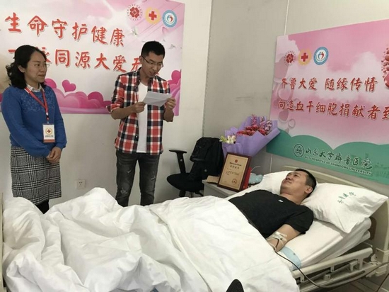 經過10年的等待,2017年8月29日,紅十字會的一個電話,改變了龐偉的生活。“你的造血干細胞和一名同齡患者的初配成功,患者病情危急,需要盡快進行造血干細胞移植,你愿意捐獻嗎?”龐偉在接到電話后,當即表示沒問題,“不是每個人都有救人的機會,只要需要,我就會義不容辭。”