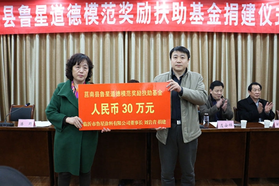 出資設立莒南縣魯星道德模范獎勵扶助基金(左)
