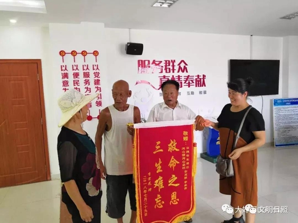 7月29日,在東港區河山鎮河山店村,兩位七旬老人李業桂和安茂順水中救人的英勇事跡在左鄰右舍間傳頌開來,鄉親們紛紛為他們豎起大拇指。事發當天村民李宗花不慎落水,多虧兩位老人齊心協力、救助及時,李宗花才得以脫離生命危險。