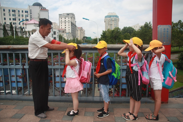 只要學生們還要上學,王文政老人就會每天早上6:50,中午11:20,下午15:20準時出現在天橋上,護送孩子們上學、放學。沒想到,這志愿者一干就是5年,老人把志愿服務看成一份責任。