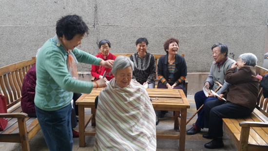 潘道慧阿姨非常熱心,院里老人生病的時候,下樓不方便,沒法出去理發,家里人又不會,都是她上門幫助老人理發。每次理過一兩個月,她都會打電話問問是否需要修剪,如果需要,她立馬拿著工具就過來。潘阿姨都是自備理發工具,而且剪、燙、染,她樣樣在行,關鍵是她從來不收費,所有的理發工具用壞了就換,以此為樂。