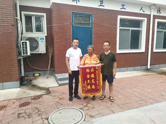 2018年8月3日清早,王煥令在責(zé)任區(qū)域清掃路邊衛(wèi)生時(shí),發(fā)現(xiàn)綠化帶旁邊一個(gè)公文包和一瓶高檔白酒,公文包內(nèi)有現(xiàn)金及身份證、銀行卡。王煥令立即將此事報(bào)給轄區(qū)隊(duì)長(zhǎng),在隊(duì)長(zhǎng)和公司工作人員的努力下,當(dāng)天找到了遺失物件的失主。失主趕到環(huán)衛(wèi)工人休息室,對(duì)王煥令表示感謝,并拿出1000元現(xiàn)金,被王煥令婉拒。事后失主特意為她送上錦旗表達(dá)謝意。