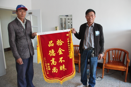 2018年10月11日,寧津市民宋先生將一面寫著“拾金不昧 品德高尚”的錦旗送到了縣綜合行政執法局,對環衛工人閏興軍拾金不昧表示贊揚和感謝。據了解,縣綜合行政執法局環衛工人閏興軍像往常一樣進行垃圾清掃作業時,無意中發現路邊有一個文件袋,打開后發現內有病例和交通事故認證書等文件。他知道這一定是有人不小心落下的,為能及時物歸原主,他第一時間將這一情況報告給了單位。單位依據交通事故認證書上的內容,經與縣交警大隊溝通聯系,最終找到了失主宋先生。拿著失而復得的文件,宋先生連聲道謝。閏興軍卻真誠說:“這是我應該做的。失主丟失物品肯定著急,自己見到物品必須及時歸還。”環衛工人收入并不高,每天做著又苦又累的工作,面對別人丟失的財物,他們選擇了物歸原主,這些拾金不昧的環衛工人不僅美化著我們的城市,更是用行動凈化我們的心靈,值得我們每一個人的尊敬!