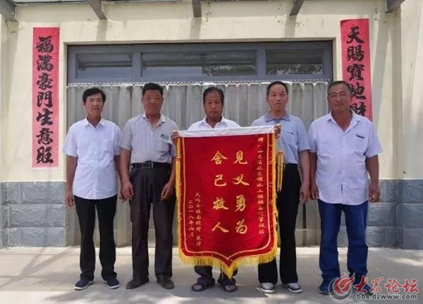 在山東省膠東調(diào)水工程?hào)|營(yíng)分局預(yù)備河管理站,有一面寫有“見義勇為、舍己救人”八個(gè)大字的錦旗。錦旗是廣饒縣大碼頭鎮(zhèn)南堤村贈(zèng)送的,用這種簡(jiǎn)單而又真誠的方式,對(duì)該站三名員工徐木讓、燕景讓、燕修堂見義勇為搶救落水者的行為表示感謝。