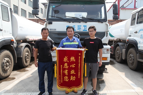 牛師傅說,事發當時,他正在工業四路上的環衛加水點加水,快加到一半的時候,接到同事電話,說經十東路諾貝爾城以西有輛大貨車著火了。牛師傅馬上停止加水,拉響警報、駕駛車輛,快速往著火點趕去。遠遠地,便看到濃濃黑煙直升天際,雄雄大火吞噬了貨車車頭,火勢非常猛烈。停好車輛,牛師傅迅速拿出車上的消防水管,安裝好高壓水槍,和從遠處跑回來的貨車司機一起,用水槍對準著火的貨車車頭部分猛噴。待火勢減小之后又調整車輛,靠近著火點,把下邊著火的輪胎澆滅。很快,火勢得到控制,消防官兵也趕到了現場。看到險情緩解,消防員對牛師傅豎起大拇指……此刻,牛師傅才放下心來,默默收好水管,駕駛灑水車離開了現場,繼續他因為救火耽擱下的,還未完成的灑水工作……