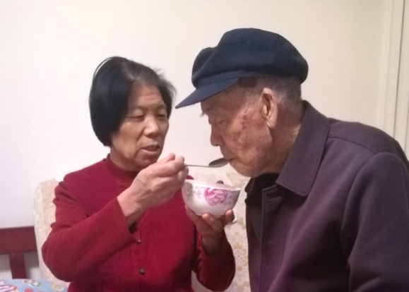 張松蘭的公公今年已98歲高齡,每天早起為老人穿衣,做一碗熱氣騰騰的蛋茶,已是張松蘭堅持了將近二十年的習慣。這么多年來,她從沒有半句怨言,默默付出的背后,收獲的是公公逐漸康復的身體、丈夫的感激和兒女們對優秀家庭美德的傳承。老人年事已高,心臟不好,2014年做手術安裝了心臟起搏器,手術初期,公公身體產生了排斥反應,夜里異常痛苦,經常凌晨三、四點鐘就醒來,張松蘭看在眼里,急在心里,為了讓老人緩解身體的疼痛,她也跟著按照公公的作息時間起床、做飯、為公公按摩手腳,就這樣沒白天沒黑夜地照顧公公。多年來,她沒睡過一個踏實的安穩覺。她聽大夫說吸氧有利于緩解安裝起搏器的病人的不良反應,張松蘭立即買來氧氣罐給老人吸氧,她經常蹬著三輪車,拉著沉重的氧氣罐騎行十多里地去加氣站給公公罐裝氧氣。日復一日、沒日沒夜的付出終于有了回報,公公的心臟慢慢適應了起搏器,身體一天天好了起來,能自己推著輪椅來回走動了,附近的村民們都說因為有張松蘭的孝順和付出,才有她公公晚年的幸福長壽。