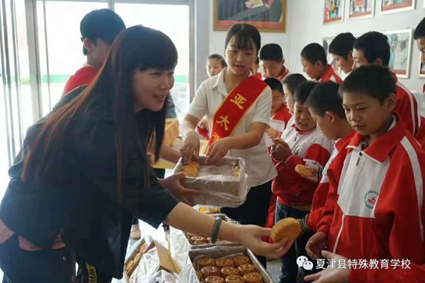 2018年八月十五的時(shí)候,前一天晚上讓師傅們加班加到12點(diǎn)把給聾啞學(xué)校的孩子們的月餅趕出來,中秋節(jié)上午親自帶團(tuán)隊(duì)送去40箱月餅,無論店里多么忙,在特殊的節(jié)日她總是會抽時(shí)間去陪聾啞學(xué)校的孩子們,給孩子送去好吃的月餅。袁敬華校長親自在大門口等候,文聯(lián)姜主席當(dāng)場寫了一幅對聯(lián)“愛心照亮希望,善舉圓筑夢想”。她看著孩子們用含糊不清嗓音對杜利說:“謝謝杜利阿姨送來的月餅”,并且孩子們上前擁抱她,那一刻杜利激動的流淚了,她堅(jiān)定還要好好努力,繼續(xù)奮斗,能多一點(diǎn)關(guān)愛社會的弱勢群體。她用自己助人為樂的愛心精心呵護(hù)著每一個(gè)孩子們,給予這些弱勢群體幼小的孩子們一點(diǎn)溫暖,讓孩子們看到希望,在不平凡的人生中找到快樂和幸福,她始終懷揣著一顆真摯善良的心,用愛心譜寫了一曲曲動人的樂章。