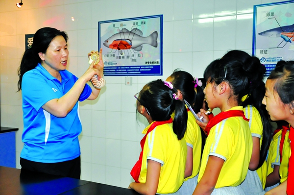 孜孜以求,開展接地氣的海洋科普。王士莉不定期到青島各個中小學科普海洋知識,并將自己培育的水母和鯊魚卵贈送給學校。在中小學生的眼中,王士莉就是“一本移動的海洋百科全書”。2007年,王士莉倡導成立了國內首家海洋科普俱樂部,科普班的課程由淺入深,涉及海洋生物的方方面面,她按照海洋生物學的體系備課,并把課堂一半的時間留出來做科普實驗,既保證了科普內容的專業體系,又讓學生樂在其中。2016年5月28日,大型公益海洋科普公開課在青島水族館舉行,王士莉結合科普報告內容,帶來了水族館養殖的蛤蜊,不僅吸引了全場小朋友的興趣,更讓那些原本只打算陪同孩子來參觀的“大朋友”們,產生了濃濃的好奇心。這樣的大型公益海洋科普報告,已經連續舉辦了十年。為讓游客系統的了解海洋生物知識,激發他們對海洋生物的興趣,先后推出了“夢幻水母”、“十二生肖展”、“有毒生物展”等主題展覽,推出“膠州灣生物展”展示了膠州灣近百年的物種變化,希望大家提高保護海洋的意識。
