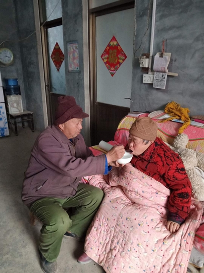 他堅持每兩小時給妻子翻一次身,一天三次給妻子擦洗身體,多年來,孔秀菊從沒生過褥瘡;