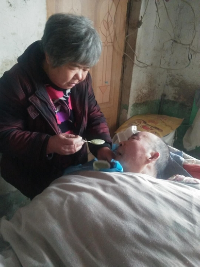 今年62歲的周忠平照顧丈夫近20年,無論遇到什么困難,她都勇敢堅強的面對,她擔心丈夫長期臥床會生褥瘡,每隔兩個小時就為丈夫翻身一次,凌晨之前從沒有好好休息過,因擔心丈夫發生肌肉萎縮,她還堅持為丈夫按摩,而長時間的站立讓她患上了靜脈曲張,但是為了丈夫,而將靜脈曲張的手術拖延了好幾年,最后在孩子的堅持下,才到醫院做了手術,術后自己還未痊愈,她就回家照顧丈夫。她深知這是一場持久戰,絲毫不敢懈怠,直至現在,她每天都會與丈夫交流,希望有一天能喚醒他,但隨著病情的惡化,丈夫的舌頭已經萎縮,但是周忠平仍然沒有放棄。