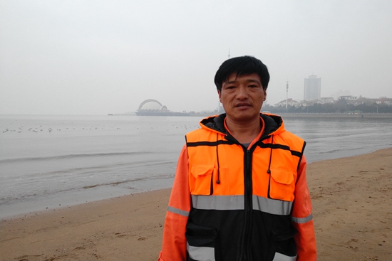 棧橋海水浴場(chǎng)毗鄰青島火車(chē)站和青島市著名景點(diǎn)棧橋,一年四季游客不斷,環(huán)境衛(wèi)生保潔工作量大。無(wú)論嚴(yán)寒酷暑,還是雨雪風(fēng)霜,作為保潔隊(duì)隊(duì)長(zhǎng)的楊寶利,每天對(duì)棧橋海水浴場(chǎng)沙灘、水域和觀景平臺(tái)進(jìn)行不間斷清理,總是最早到達(dá),最晚離開(kāi)。浴場(chǎng)水域有漂浮雜物時(shí),他第一個(gè)駕船下海進(jìn)行打撈。有時(shí)海面風(fēng)浪較大,不適宜劃船,他則跳入齊腰深的海水中,頂著海浪進(jìn)行清理。2008年至今,每年六七月份,大型滸苔災(zāi)害會(huì)侵襲浴場(chǎng),他都積極參與其中。2018年抗擊滸苔行動(dòng)中,楊寶利曾與浴場(chǎng)干部職工先后連續(xù)6天6夜、6天5夜堅(jiān)守崗位,只為盡早將滸苔清理完畢,為市民、游客打造一個(gè)干凈整潔的浴場(chǎng)環(huán)境。