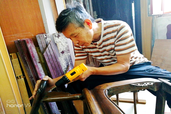 寧波老師為居民修理椅子