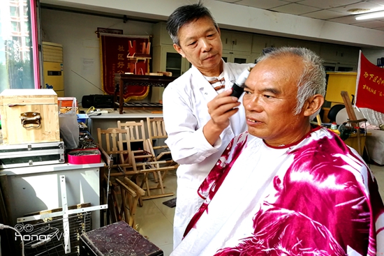 在14名志愿者中,其中13人超過了60歲,最大的高達67歲。就是這些高齡人,每天無償地為周邊居民義務理發,維修家具、打磨刀具、維修電器和水電管道等,他們在用自己的雙手服務百姓,用自己的心靈傳遞正能,用自己的行動為省會城市補充功能。