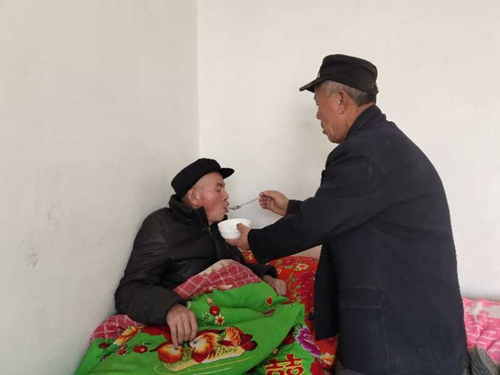 俗話說:長兄如父。父親走了,曹寶慶為了照顧弟弟又當(dāng)?shù)之?dāng)媽,像照顧自己的孩子一樣照顧著弟弟的日常生活。一日三餐由曹寶慶精心為弟弟料理,四季的衣服按時為弟弟換上。白天忙完地里的農(nóng)活晚上幫弟弟把臟衣服洗干凈涼好,等弟弟吃罷飯睡下了他才輕輕地帶上門回到自己家中。他本打算把弟弟接到自己家中照顧,這樣能更方便些,可弟弟只愿意待在他熟悉的老房子里。無奈也只能由著弟弟,曹寶慶只能一天三趟穿梭在自己家和弟弟家之間。曹寶慶說:農(nóng)閑時也倒沒什么,就是耽誤點時間而已,尤其是農(nóng)忙的時候就有點跑不過來了,但是我不過來,弟弟就吃不上熱飯,他看不到我心里也不踏實。我只能堅持。既然弟弟愿意待在父親留下的老房子里,曹寶慶就盡自己所能把這所老房子重新修葺了一番,讓弟弟能夠更舒適的住在這里。