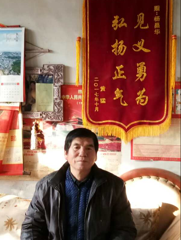 黃某一家為感謝楊昌華老人救命之恩,親自將 “見義勇為弘揚正氣”的錦旗送到英雄家,并通過齊魯電視臺小溪辦事攝制組,親自采訪楊昌華老人舍己救人的英雄事跡,對傳播正能量,弘揚中華美德,具有積極的推動作用。
