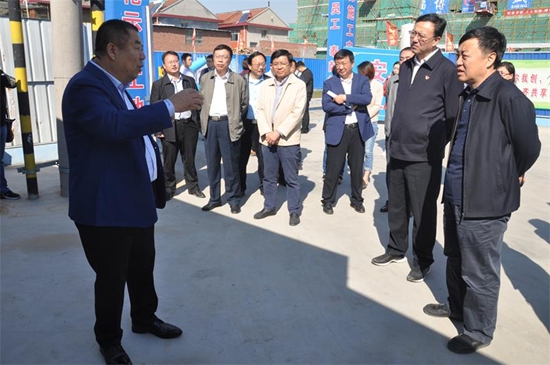 2018年10月11日,張兆海(左一)向來企業調研的淄博市政協主席叢錫鋼一行介紹周村燒餅文化產業創意園相關情況