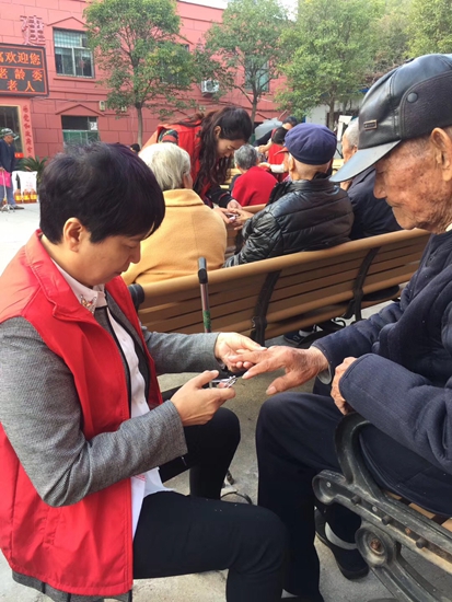 蔣寶峰是一位有維修家電特長(zhǎng)的教師。2005年,他看到泉城義工的活動(dòng)報(bào)道后,直接帶著維修工具,和愛(ài)人、孩子一起現(xiàn)場(chǎng)報(bào)名參加活動(dòng)。那天,維修電器的居民排起了長(zhǎng)隊(duì),拿來(lái)的電器大到彩電、組合音響,小到收音機(jī)、電動(dòng)剃須刀,應(yīng)有盡有,有的一家拿來(lái)四五件。一個(gè)上午的時(shí)間,蔣寶峰一件接一件地修,連頭都顧不上抬一下,水也沒(méi)喝一口,汗水順著面頰流到桌面,洇濕了一大片,他自己都感覺(jué)不到。當(dāng)蔣寶峰修完最后一臺(tái)收音機(jī)時(shí),他長(zhǎng)長(zhǎng)地舒了一口氣,他說(shuō):“雖然很累,但心里很快活!”