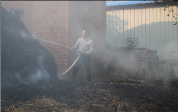 2019年6月13日下午3:00左右,三春集鎮賈寨行政村賈寨自然村一村民院內突發大火,霎時濃煙滾滾,火舌亂串,嚴重威脅著周邊房屋和一板材加工企業的安全。接到警情的共產黨員、執法隊隊長任廣勤帶領執法隊人員,駕駛一輛灑水車第一個趕赴現場。