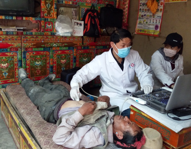 由于藏區鄉村分散于大山深處,交通極其不便,為便于開展工作,他背起被褥和超聲設備與當地醫生一起居住鄉下,每天早出晚歸,為小到剛剛出生的嬰兒,大到八九十歲的老人做細致的身體檢查,“十一”“中秋”兩節期間及每個周末都未曾中斷。