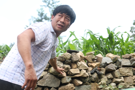 有位老人大門緊鎖,李宜紅和另外一位村民,就沿著墻外的水泥磚塊,爬上近三米高的院墻,跳到了院子中,將老人轉移出來。