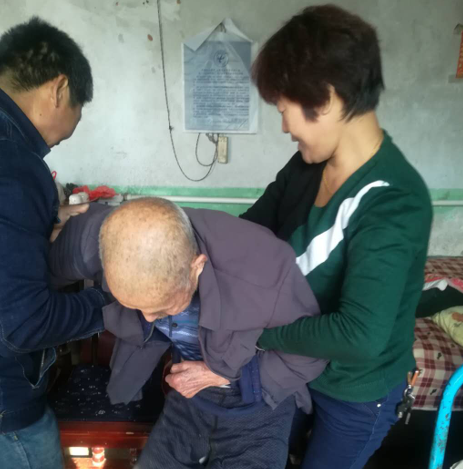 這邊大伯哥伺候完了,那邊隔壁床的患病的公公也正在需要人照顧。韓吉學的老父親今年已經87歲,由于年紀大,大病小病不斷,幾年前開始出現腦萎縮癥狀,現在癥狀愈加明顯嚴重。為方便照顧老人,也為方便照顧韓吉祥,韓吉學、池洪蓮夫婦便把老人接到了韓吉祥家,一塊照顧,這樣不出家門口,就都可以照顧到了。
