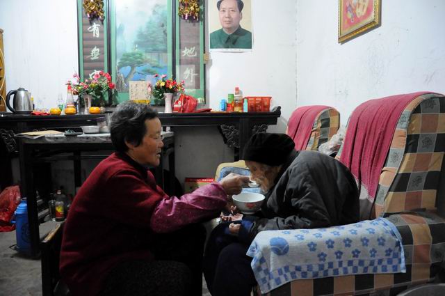 1969年,23歲的趙恒菊嫁進了洪緒鎮顏樓村。日子雖過的清貧,可一家人平平安安,其樂融融。然而2007年,一場突如其來的災難打破了這個家的溫馨與寧靜,丈夫突發重病,撒手人寰,讓趙恒菊陷入了崩潰的邊緣。而喪子之痛更是讓婆婆傷心欲絕,一個星期不吃不喝,這讓還在悲痛之中的趙恒菊更加焦急和憂慮。面對失去勞動能力的家庭,年邁體弱的公婆,趙恒菊毅然選擇了堅守!她強忍住失去丈夫的悲痛,想盡一切辦法寬慰婆婆,才讓老人振作過來。從那時起,趙恒菊沒睡過一頓安穩覺,離開婆婆一會,都讓她牽腸掛肚,對于趙恒菊,照顧婆婆,就是她全部的生活。2008年,時年95歲的婆婆在上廁所時,不小心摔壞了股骨頭,失去了行動能力。趙恒菊每日熬湯喂飯,收拾大小便,從沒有怨言,婆婆康復后更是一如既往的照顧婆婆。在她的精心照料下,107歲的老人安詳的離開人世。