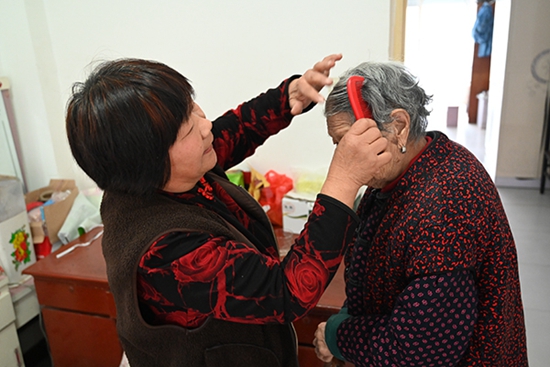 老人房間不算很大,家具也都是老款式,但手摸上去,一點灰也沒有。知道婆婆愛干凈,尚愛英除了常常幫她洗澡、換洗衣物外,房間也收拾得干干凈凈的。“愛英不容易,是個好媳婦!她對我的好,我都記著呢。婆媳好,家庭就好;家庭好,社會就好,家和萬事興。”老人連聲贊嘆。