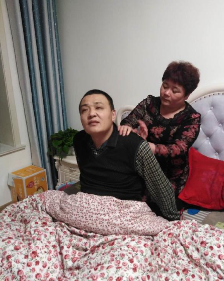 每天董西蘭都會早早起床,給丈夫翻身、擦洗、喂飯,幫助丈夫大小便,同時還得照顧年幼的女兒。為了防止丈夫肌肉萎縮、壞死,她每天都得給他按摩身體4次,幫助他做拉伸。由于需要看護丈夫和照顧女兒,她無暇外出打工,只能在家中做些手工活補貼家用、供女兒上學。