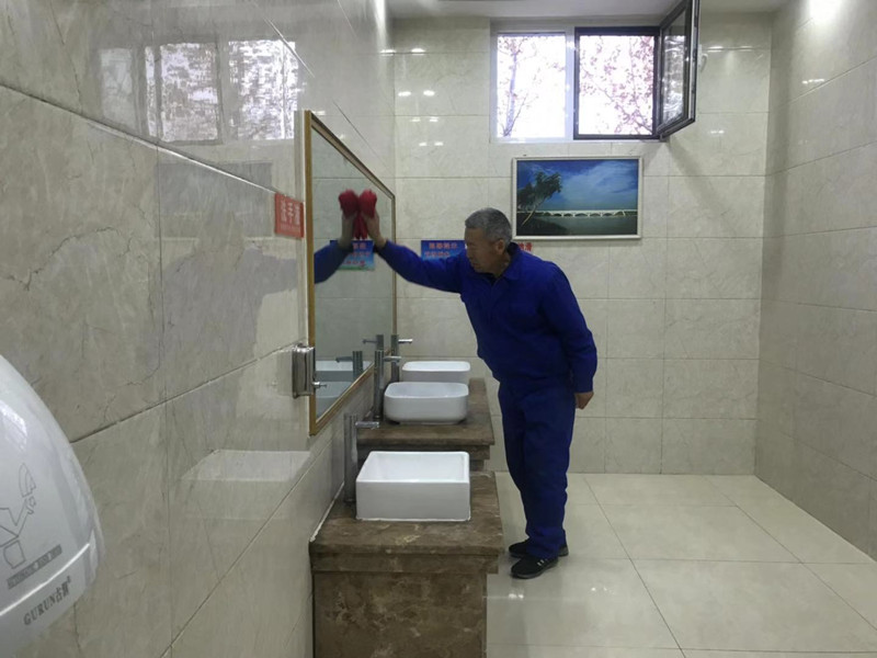2018年10月,于冰春成為一名普通的公廁保潔員,工作表現(xiàn)優(yōu)異的他被分配到了人流量較大、地處高青縣千乘湖公園的34號(hào)公廁。每天早上5點(diǎn)半,于冰春就開始了一天的工作,清掃地面、擦拭潔具、檢查設(shè)施……上午9點(diǎn)以后,來公園游玩的市民逐漸增多,整個(gè)白天大部分時(shí)間里都處于高峰時(shí)段。于冰春雖只是一個(gè)保潔員,但工作毫不馬虎拖沓,嚴(yán)格按照“跟蹤式服務(wù)、一客一保潔”衛(wèi)生標(biāo)準(zhǔn),盡可能地保持潔凈,這樣的節(jié)奏會(huì)持續(xù)一整天。“公廁是全天24小時(shí)對(duì)外開放的,使用這個(gè)公廁的人很多,最忙的時(shí)段,就沒有一點(diǎn)休息的時(shí)間了,要時(shí)時(shí)刻刻進(jìn)行保潔。”于冰春說道。到了夜間十點(diǎn)半左右,如廁市民少了很多,一天的工作行將結(jié)束,這時(shí)的于冰春從里到外將公廁徹底收拾一遍后,才會(huì)回到管理間,卸下滿身的疲憊,安安穩(wěn)穩(wěn)地睡上一覺。雖然工作忙碌,一日三餐不能按時(shí)吃,但是于冰春對(duì)這份工作的熱情從未減少過,他已經(jīng)把這里當(dāng)成了自己的家。