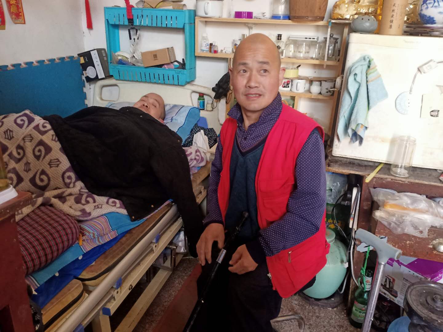 張保田自身是肢體二級殘疾,架著雙拐,但是他毅然承擔起照顧先天性肢體二級殘疾哥哥的責任,二十年如一日的陪在床前細心照料,翻身、喂飯、洗衣服、端屎端尿,這是張保田每天的日常工作。像他自已說的“生活總要繼續,現在生活這么好,我們哥倆要相互照顧”。