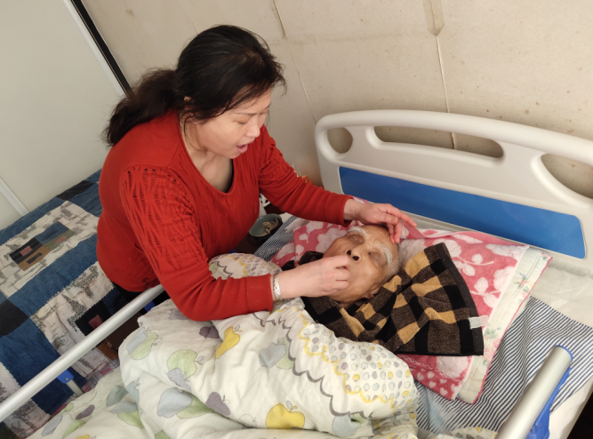 衰老是人之常情,孝老乃德之大義。徐淑春的婆婆一直有腦血栓后遺癥,在床上癱瘓十余年,生活不能自理。徐淑春退休后,沒有任何的怨言,又接起照顧婆婆的重任。都說婆媳關(guān)系難處,但是徐淑春把自己當(dāng)成婆婆的親女兒一般,竭盡全力地照顧著她,在婆婆癱瘓期間,日復(fù)一日照顧婆婆的飲食起居,喂飯、擦身體、清理屎尿、換洗衣物、整理床鋪等等細(xì)微處都是徐淑春的身影。徐淑春小小的個(gè)子,照顧著身形高大的婆婆,從床上給婆婆翻身,將婆婆搬到椅子上去曬太陽等等,那小小的個(gè)頭仿佛有使不完的勁頭,盡心盡力承擔(dān)起照顧婆婆的重任,任勞任怨在婆婆身邊精心照顧的這些年,兩人從未紅過臉,時(shí)時(shí)處處事事躬身踐行孝老愛親的家風(fēng)家訓(xùn)。