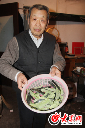 對自己“吝嗇”對別人卻很“大方”,周寶存從菜市場里撿來的冬瓜皮做飯。(曹亮 攝)