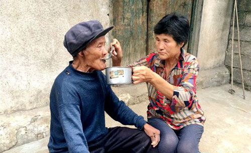 只為對兒媳的一個承諾,十多年間,她每天做著同樣的事情:早晨騎著電動自行車趕往3里路以外的親家家中,做飯、喂飯、清理床上穢物,陪親家聊天,傍晚時分再次趕到親家重復著上午的事情,直到夜色昏沉才拖著疲憊不堪的身子回家。
