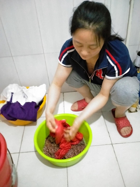 王秀給家里老人洗衣服