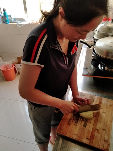 王秀給家里老人準備飯菜