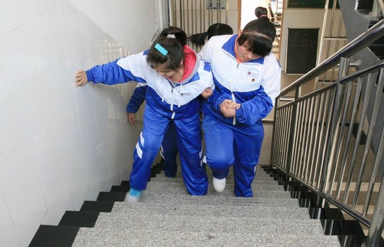 張明月今年18歲,由于患先天性聽力障礙,2005年她從高青來到淄博市聾人學校就讀。這一年,同是高青人的張月成了張明月的同學。與別人不同的是,張月自幼患有小兒麻痹癥,行走比較困難。學校是寄宿制的,由于無法正常行走,生活中好多方面張月無法自理,她也無法融入到小伙伴的游戲中。