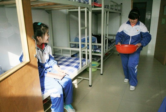 就在張月孤寂無助的時候,熱心腸的張明月向張月伸出了援手。每天早上,張明月會提前20分鐘起床,幫助張月洗漱、整理內務。就餐時,張明月總是先把兩人的餐具洗好,再把飯菜買好一起吃。碰到拿不準張月喜歡吃什么的時候,她就扶著張月一起到窗口買。體育課上,別的同學跑步或打球,張明月就攙著張月一圈圈的散步。張月在學校的每一步行走,都在張明月的攙扶下完成。在大家眼里,張明月就是張月的“全職保姆”.