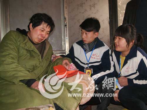十里八村的愛心人士都伸出援助之手,春天的溫暖不斷傳遞:鄆城第一初級中學(xué)的志愿者把拾垃圾換來的500元送到了“龍鳳胎”家;鄆城縣民政局、慈善總會(huì)、雙橋鄉(xiāng)政府的工作人員把3000元救助款送到了“龍鳳胎”家中,相關(guān)部門開辟了綠色通道為一家四口辦低保,申請醫(yī)療保險(xiǎn);菏澤市婦聯(lián)尋找愛心人士和兩個(gè)孩子結(jié)成對子;山東省呂劇院院長段雨強(qiáng)受著名呂劇表演藝術(shù)家郎咸芬委托,從濟(jì)南趕到“龍鳳胎”家,將愛心人士捐獻(xiàn)的2800元善款交到“龍鳳胎”家中;菏澤軍分區(qū)官兵代表來到前黃崗,捐了1000元愛心款;在四川師范大學(xué)文理學(xué)院上大學(xué)的學(xué)生劉昱杉從媒體上了解此事后,打電話要求爸爸替她捐款100元。