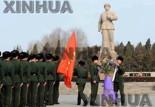 3月1日,在撫順雷鋒紀念館,各界群眾向雷鋒塑像敬獻花籃。