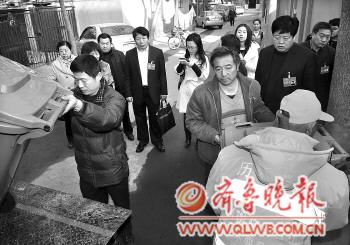 代表委員到濟南甸柳一居考察垃圾分類處理。本報記者郭建政攝