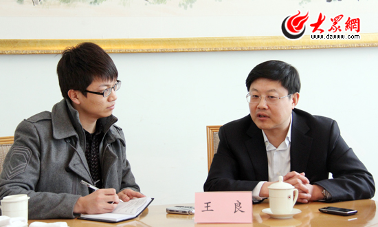 省人大代表、煙臺市委副書記、市長王良接受大眾網記者采訪。