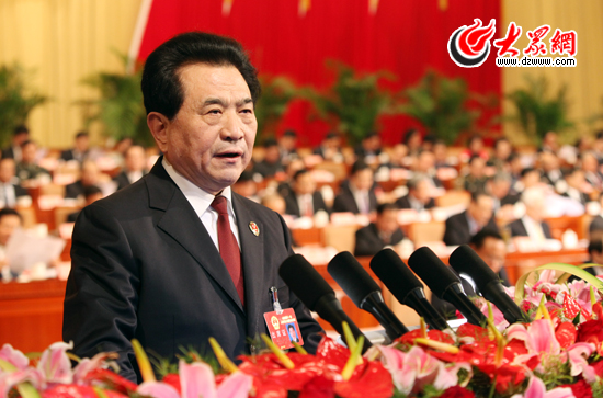 21日下午,在山東省十一屆人大五次會議上,山東省人民檢察院檢察長國家森代表省檢察院向大會做工作報告。(盛堃 攝)
